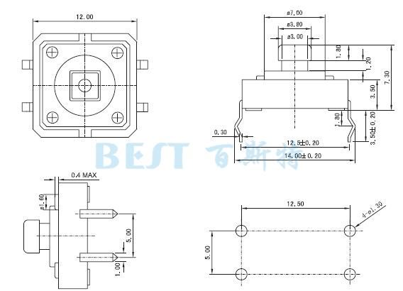 輕觸開(kāi)關(guān)12×12_TS-1103_參考圖紙: